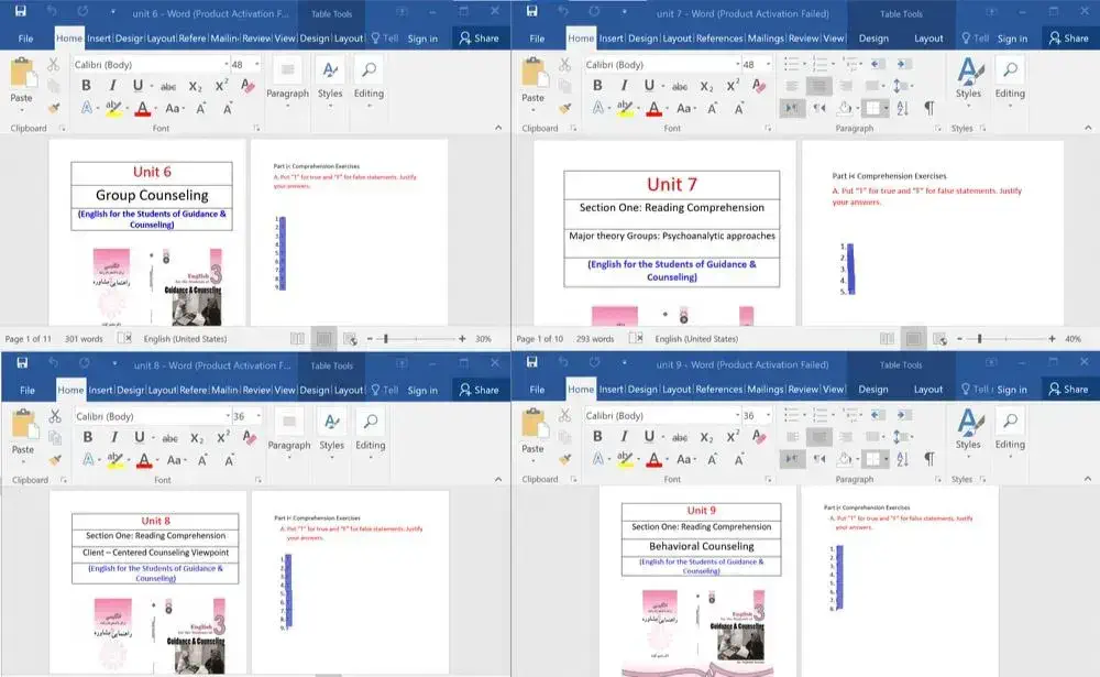 پکیج مجموعه کامل پاسخ تمرین های Unit 1 تا Unit 13 کتاب: English for the Students of Guidance & Counseling<(فایل ها تایپ شده مرتب و شیک)–(فرمت فایل ها DOCX)