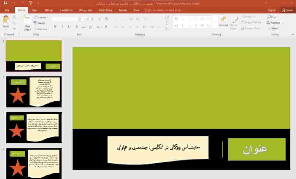 پاورپوینت معناشناسی واژگانی در انگلیسی: چند معنایی و هم آوایی