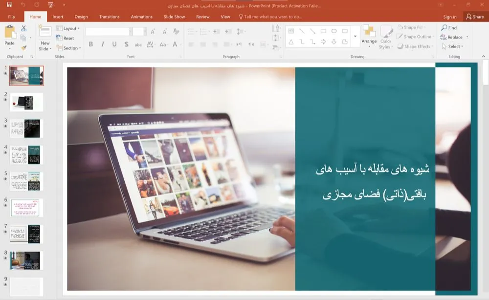 پاورپوینت شیوه های مقابله با آسیب های بافتی (ذاتی) فضای مجازی< فایل شامل 9 اسلاید (قابل ویرایش) دارای تصاویر مناسب دانشجویان علوم تربیتی, و کنفرانس دانش آموزان.